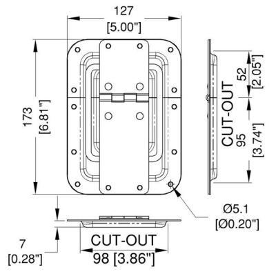 Einbauaufstellscharnier Stahl, gekröpft groß 127x173mm. Der Aufsteller sorgt dafür, dass sich der Deckel Ihres Flightcase sicher und fest Aufstellen lässt.